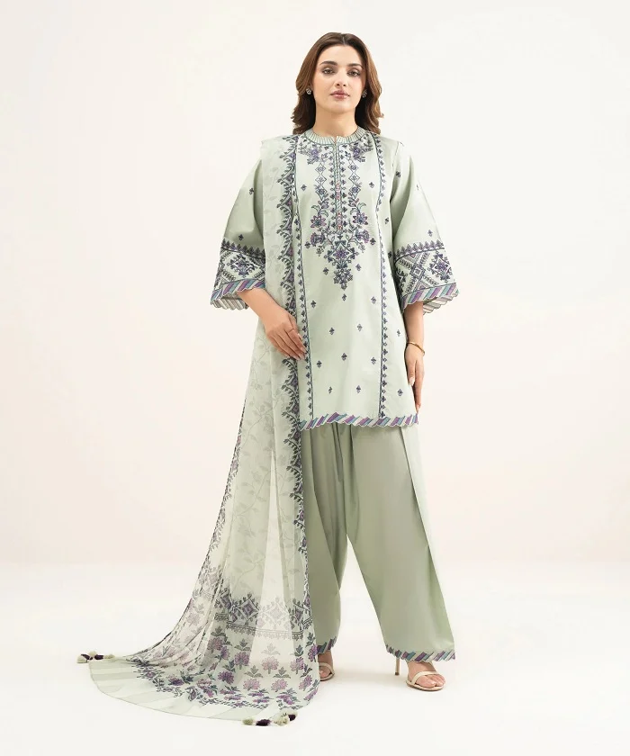 Stylish green color embroidered lawn 3pc suit Rs:4,590 Rs:2,754.