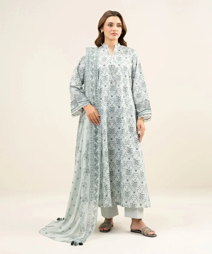 grey color lawn embroidered three-piece printed suit Rs:4,590 Rs:2,754.