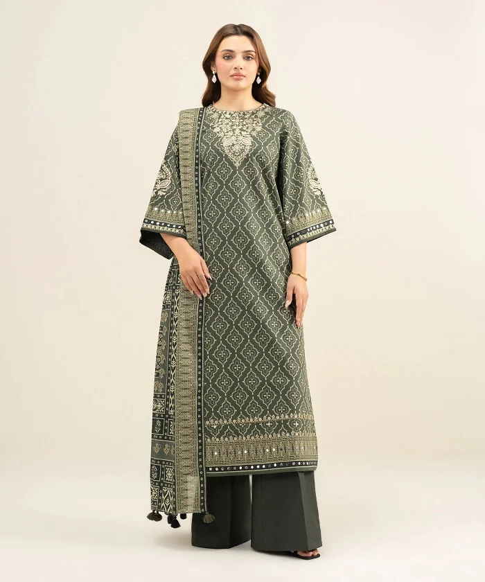 3-piece embroidered olive green color lawn suit Rs:4,590 Rs:2,754.