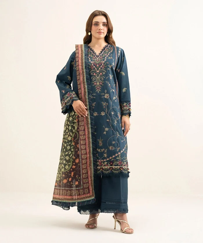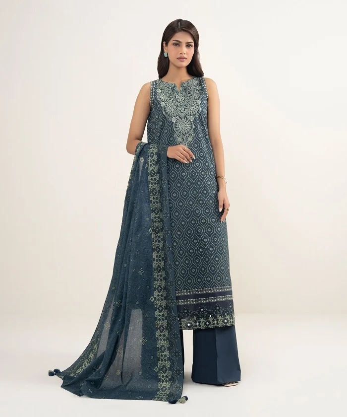 Blue color 3pc printed lawn embroidered unstitched suit Rs:4,590 Rs:2,754.