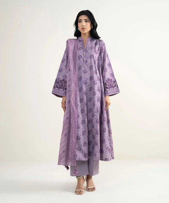 Unstitched 3pc purple color lawn embroidered suit Rs:4,590 Rs:2,754.