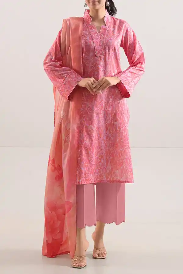 Pink color printed lawn unstitched 3 piece suit PKR:2,999 PKR:2,699.