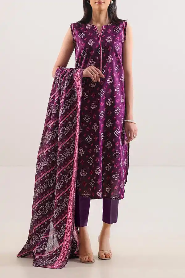 Printed purple color lawn 3 piece suit for perfect summer look buy now for PKR:3,499 PKR:2,699 Only.