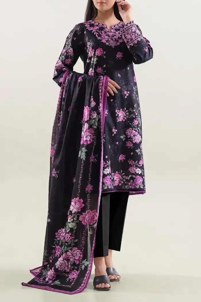 Digital floral printed black color 3pc embroidered lawn suit Rs:5,999 Rs:3,299.