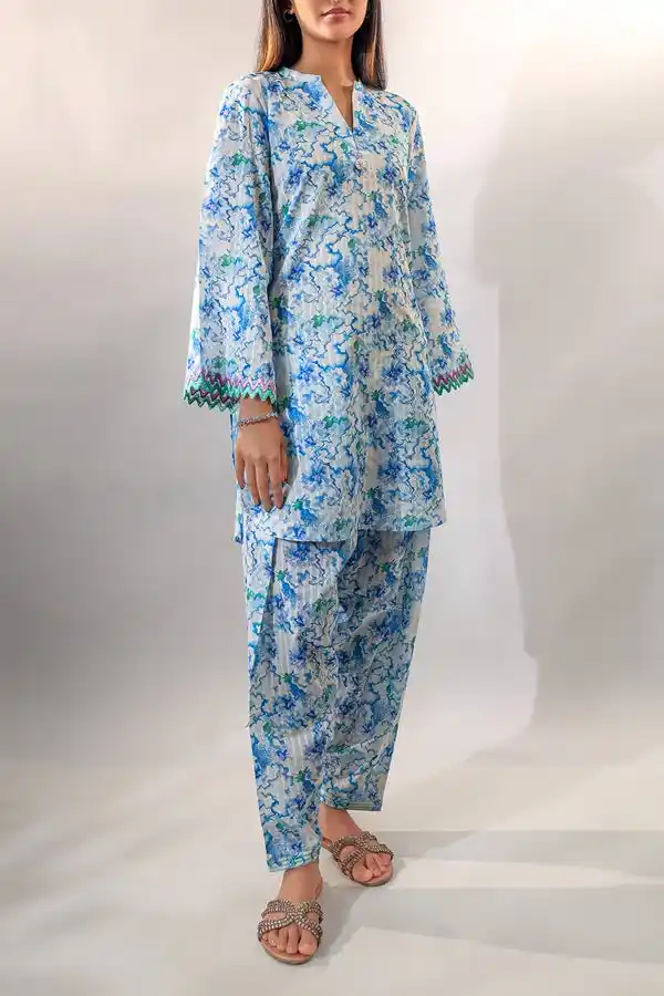 Blue floral digital printed lawn two piece suit Rs:2,299 Rs:1,499.