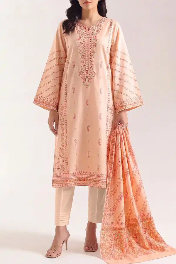 Peach color lawn digitally printed 3piece suit Rs:2,999.