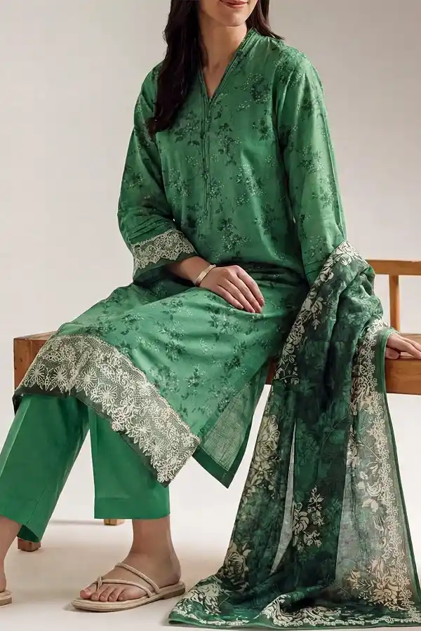 Enhance your summer look by wearing this green color 3 piece printed lawn 3pc suit Rs:3,499 only.
