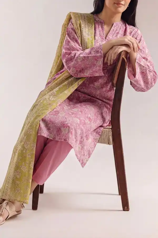 Let’s get a unique summer look by wearing this pink lawn 3-piece suit for Rs:2,999.