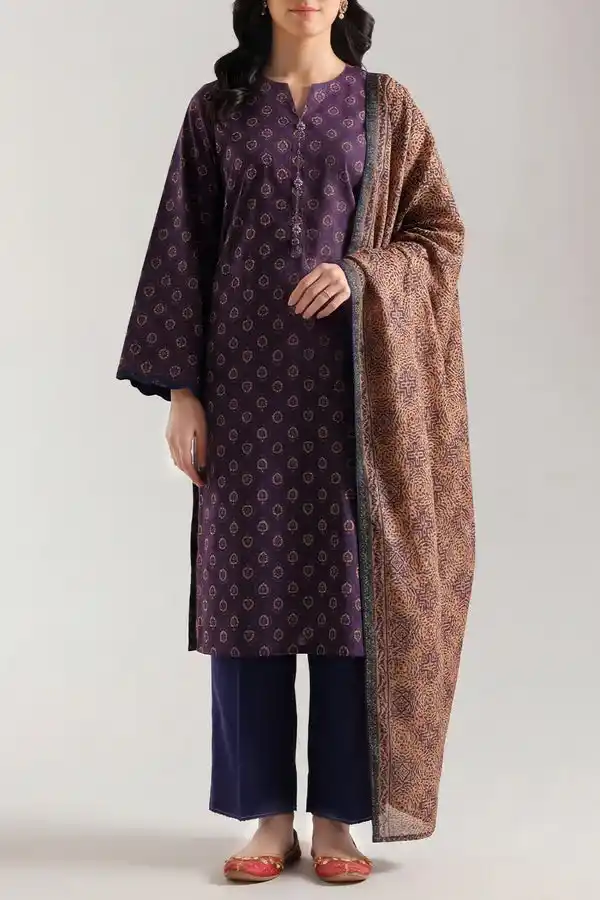 Lilac color summer lawn printed 3pc suit Rs:3,499.
