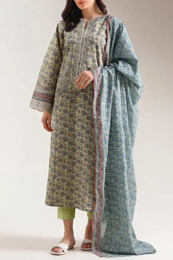 Light color lawn digital printed stylish summer 3-piece suit Rs:2,999 only.