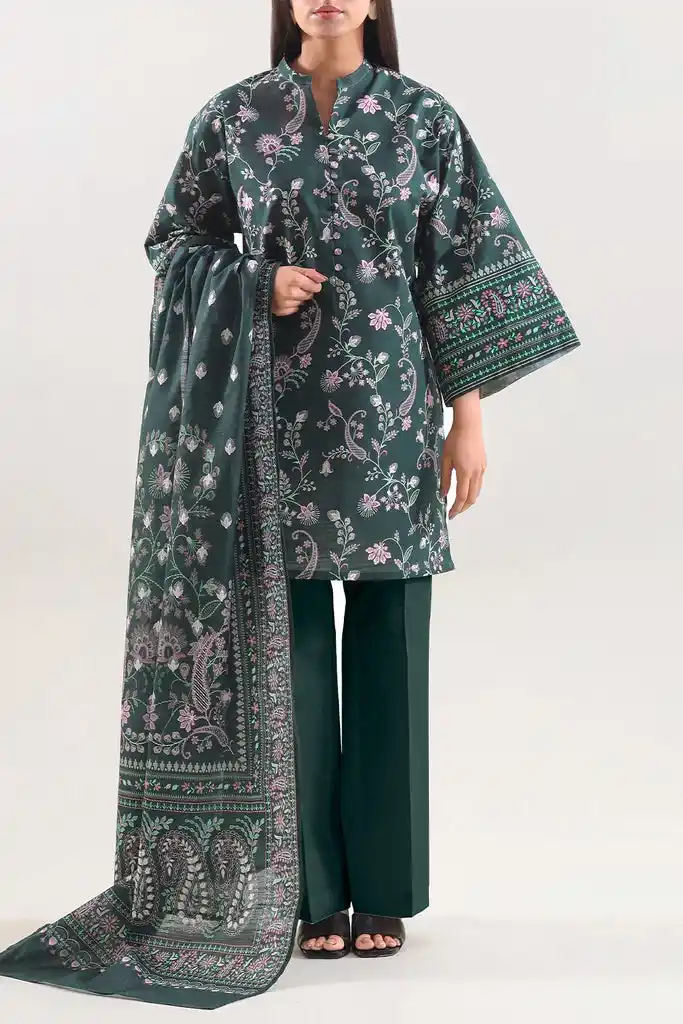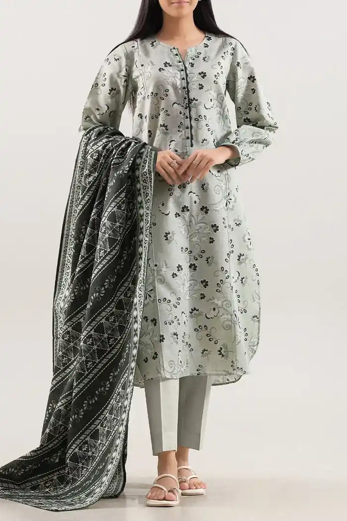 Printed khaddar 3-piece shirt/dupatta and trouser Rs:2,999.