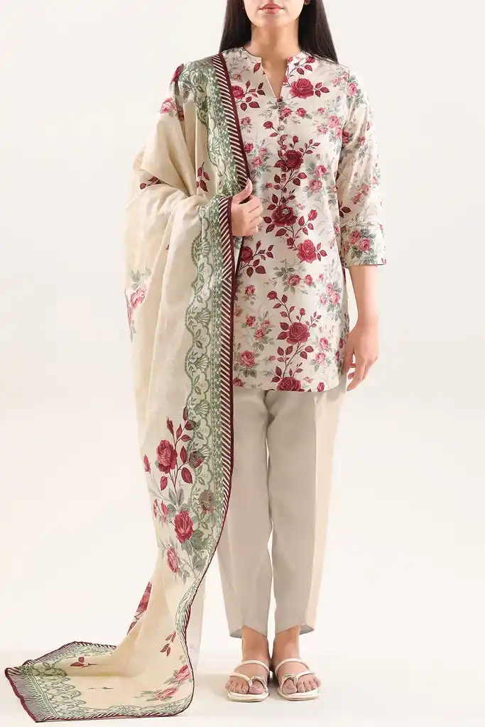 Floral digital printed 3-piece lawn & khaddar suit Rs:2,999.