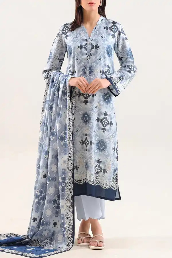 Blue printed cotton khaddar 3pc suit Rs:2,999.