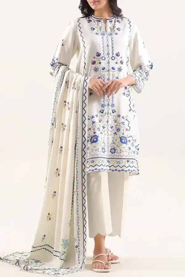Ivory khaddar suit Rs:3,499.