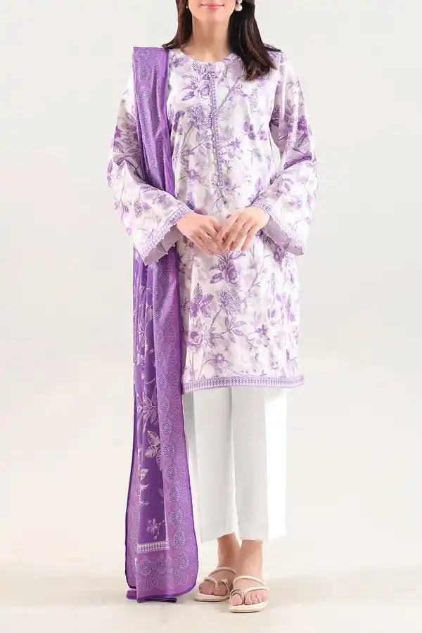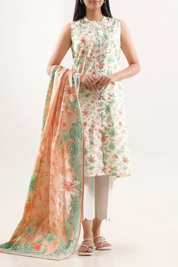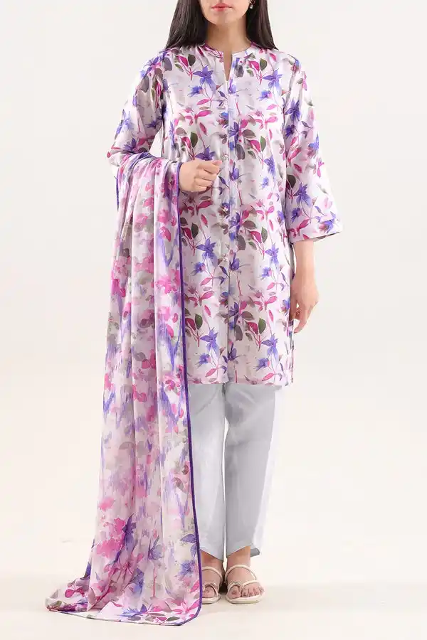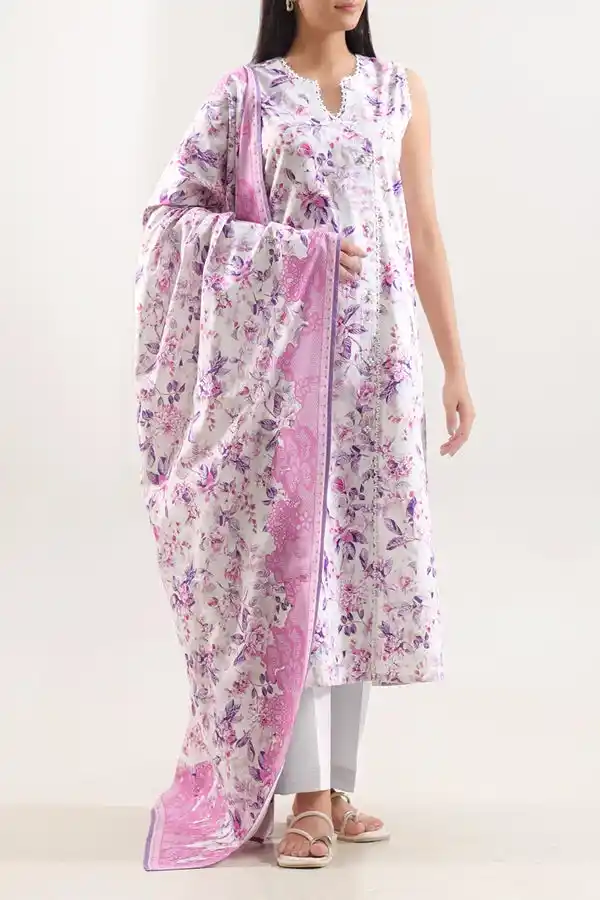 Floral digital printed 3p unstitched ivory color suit Rs:2,999.