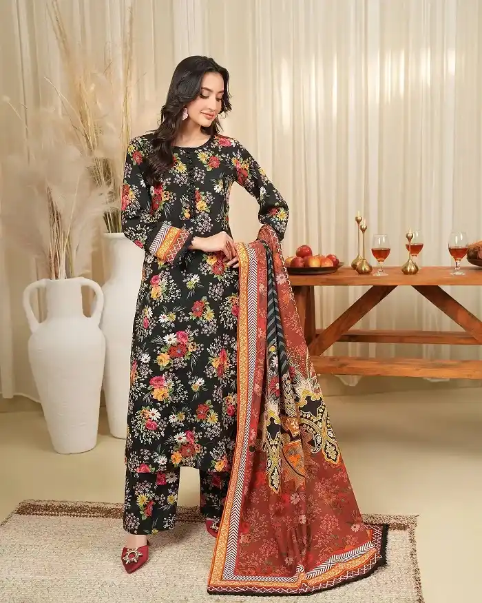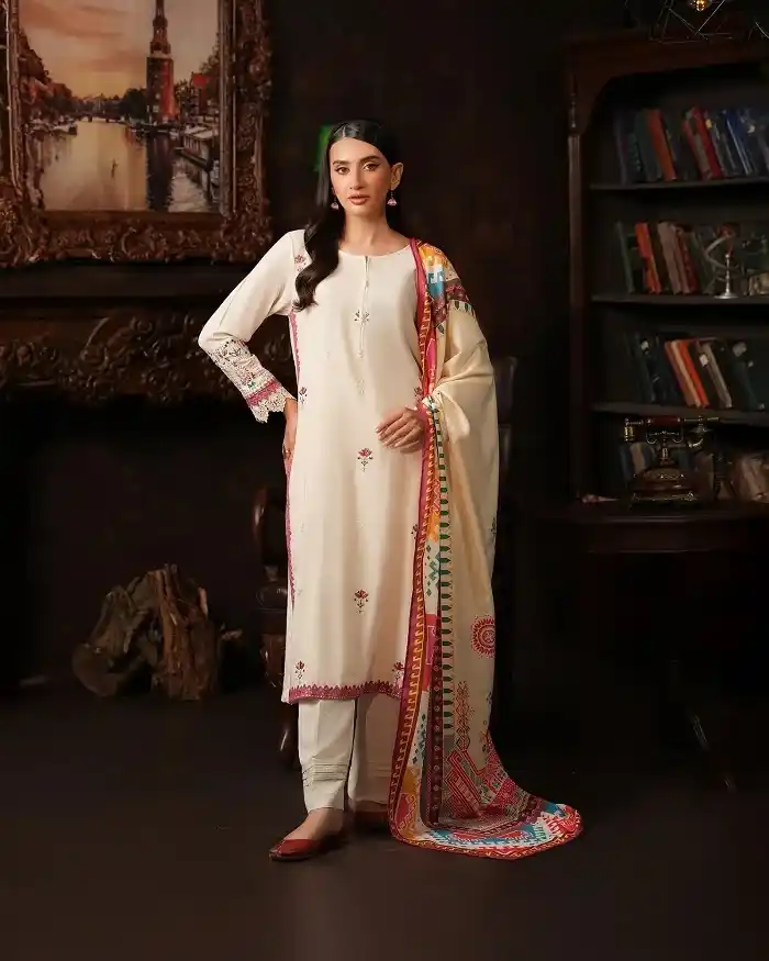 Formal wear winter 3-piece khaddar unstitched suit Rs:7,090 Rs:6,963.
