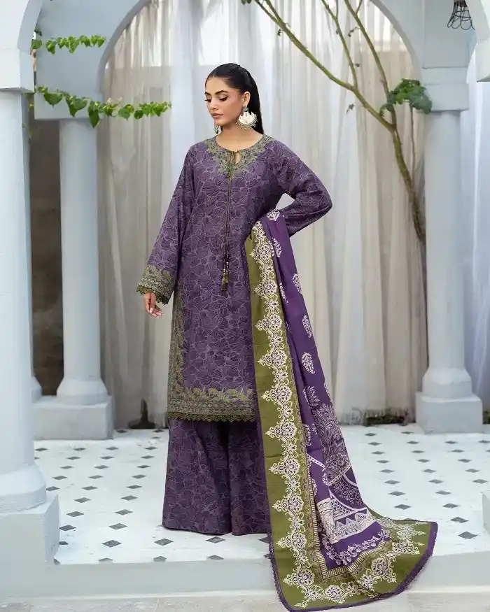 3-piece khaddar purple color winter suit Rs:9,950 Rs:6,965.