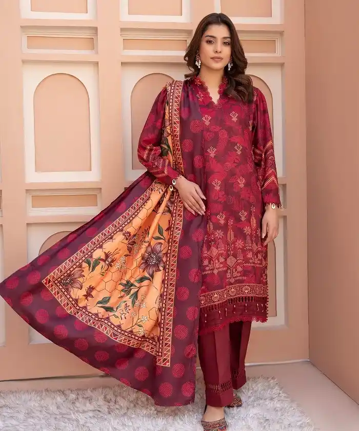 Linen maroon color 3pc suit Rs:4,290 Rs:3,003.