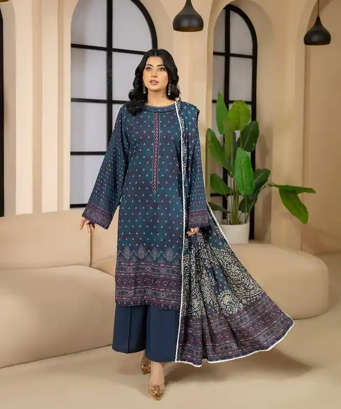 Winter digital printed three piece linen suit Rs:4,490 Rs:3,143.