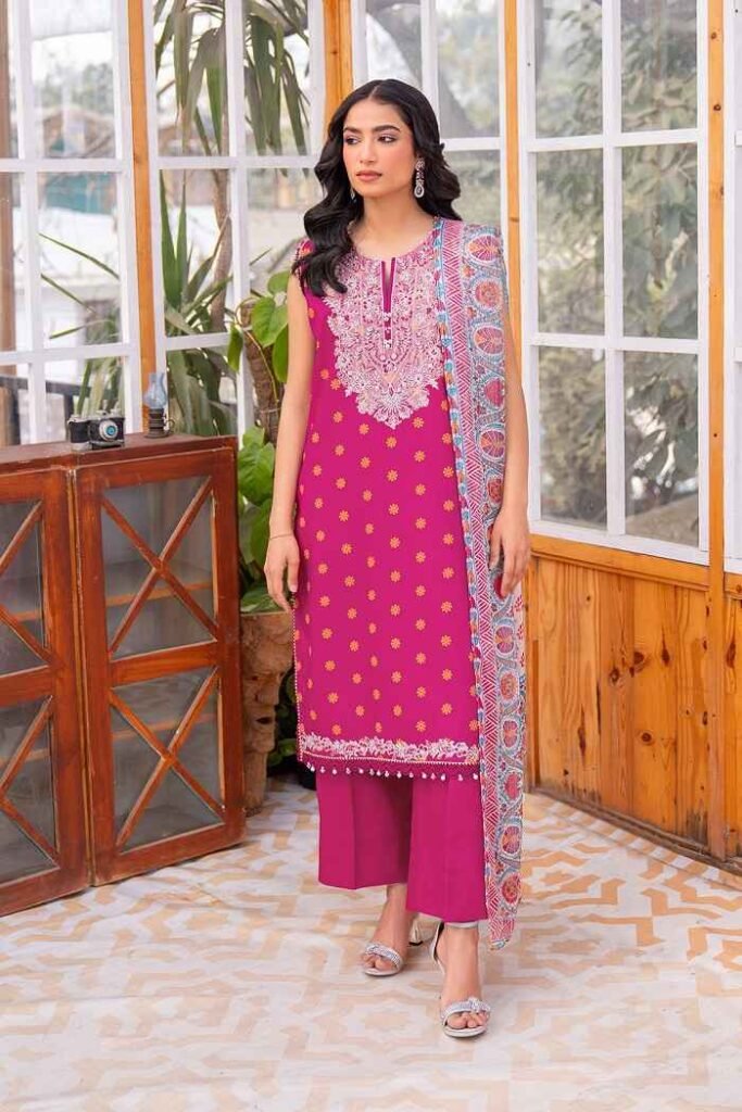 Unstitched embroidered hot pink color lawn three-piece suit PKR:6,250 PKR:3,750.