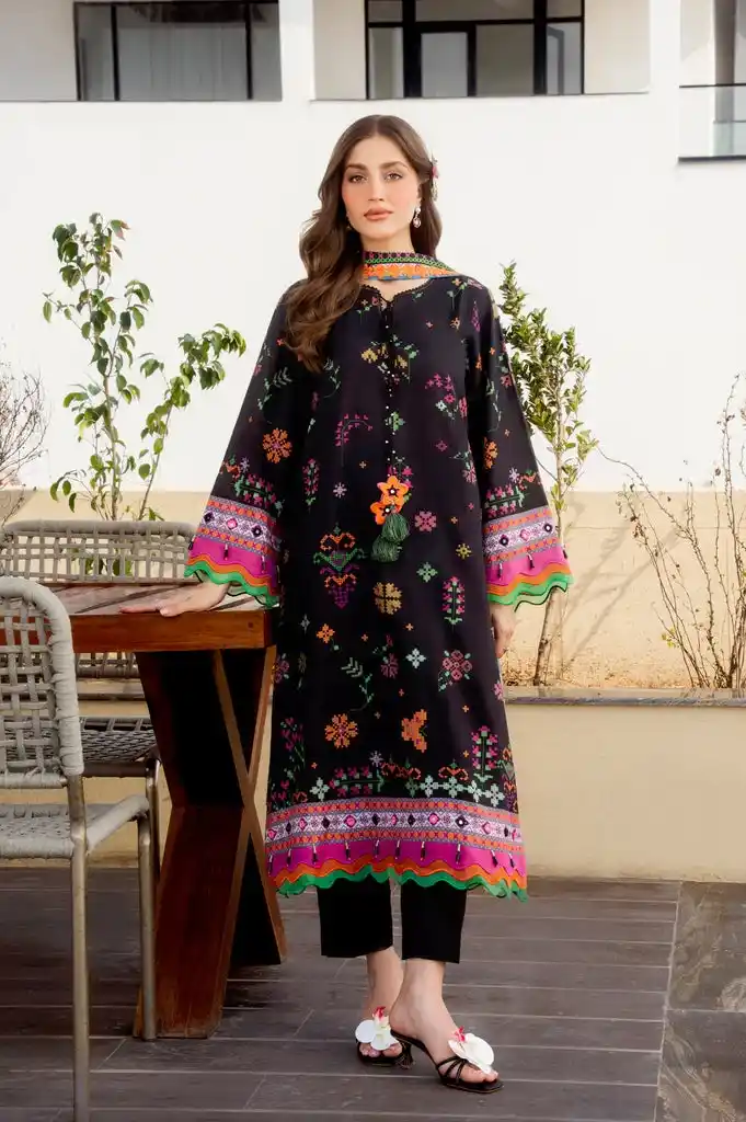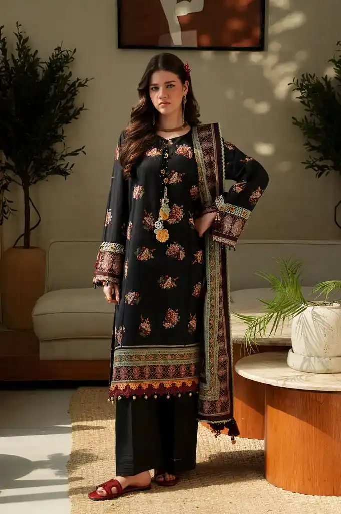 Black color unstitched lawn printed suit Rs:3,990 Rs:2,993.
