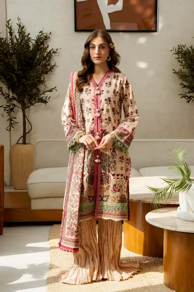 Beige floral printed 3pc unstitched for women PKR:3,990 PKR:3,290.