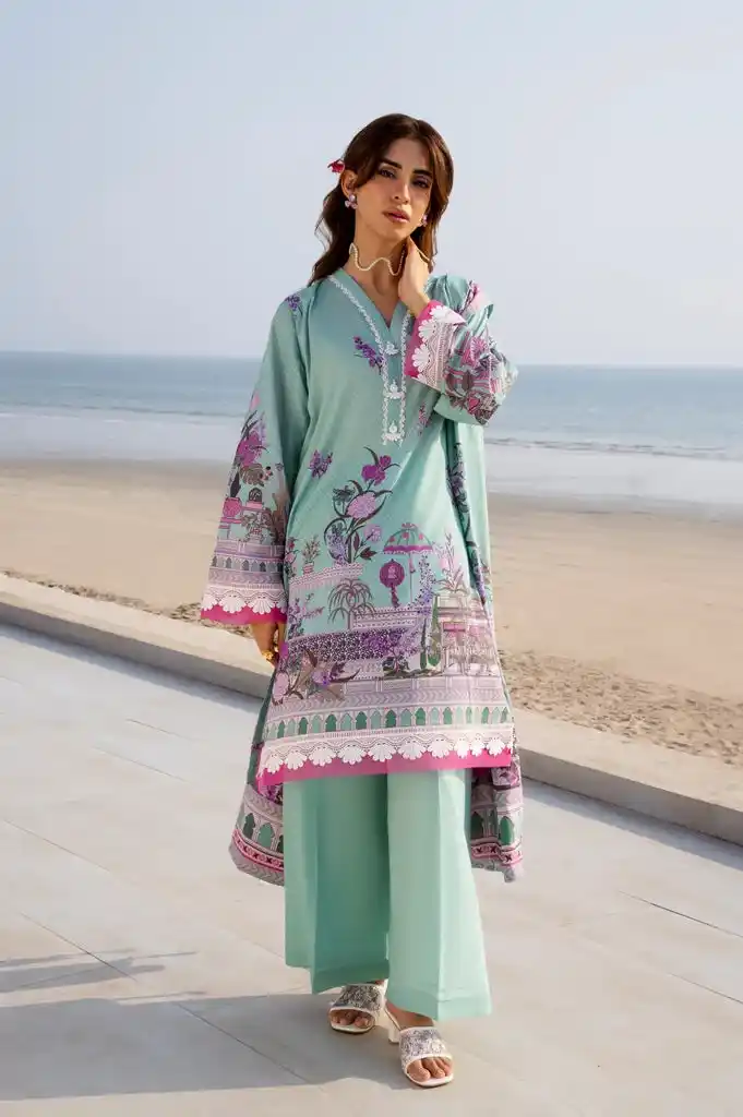 3pc mint printed unstitched suit PKR:3,990 PKR:3,290.