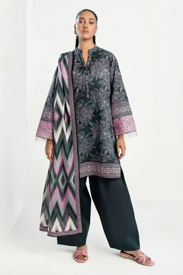 Printed black 3pc suit PKR:3,790 PKR:3,032 only.