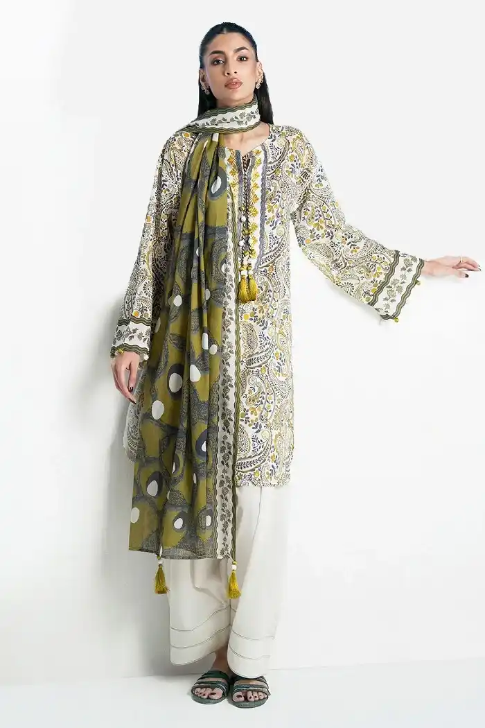 3pc lawn unstitched printed suit for women Rs:5,534 Rs:3,875 only.