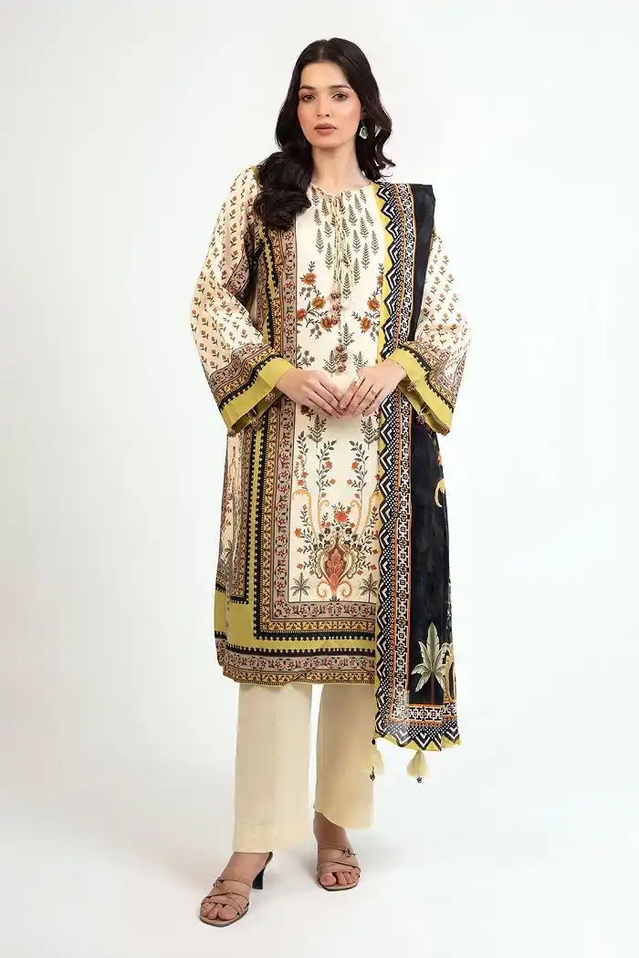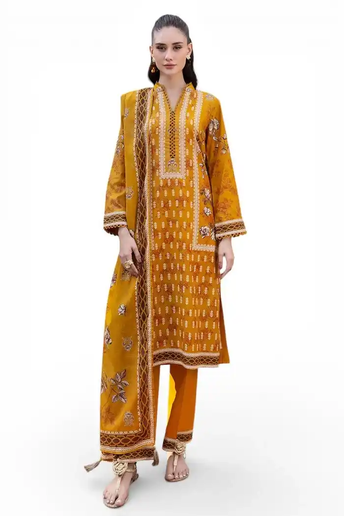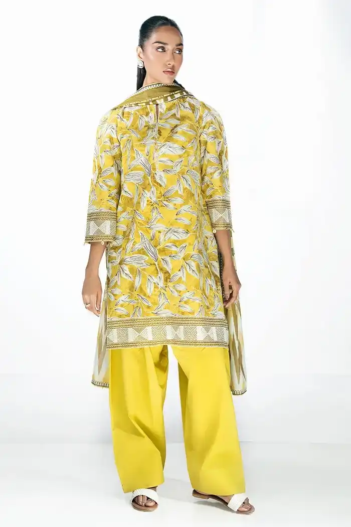 Digital printed yellow color 3 piece unstitched suit PKR:4,100 PKR:3,075 only.