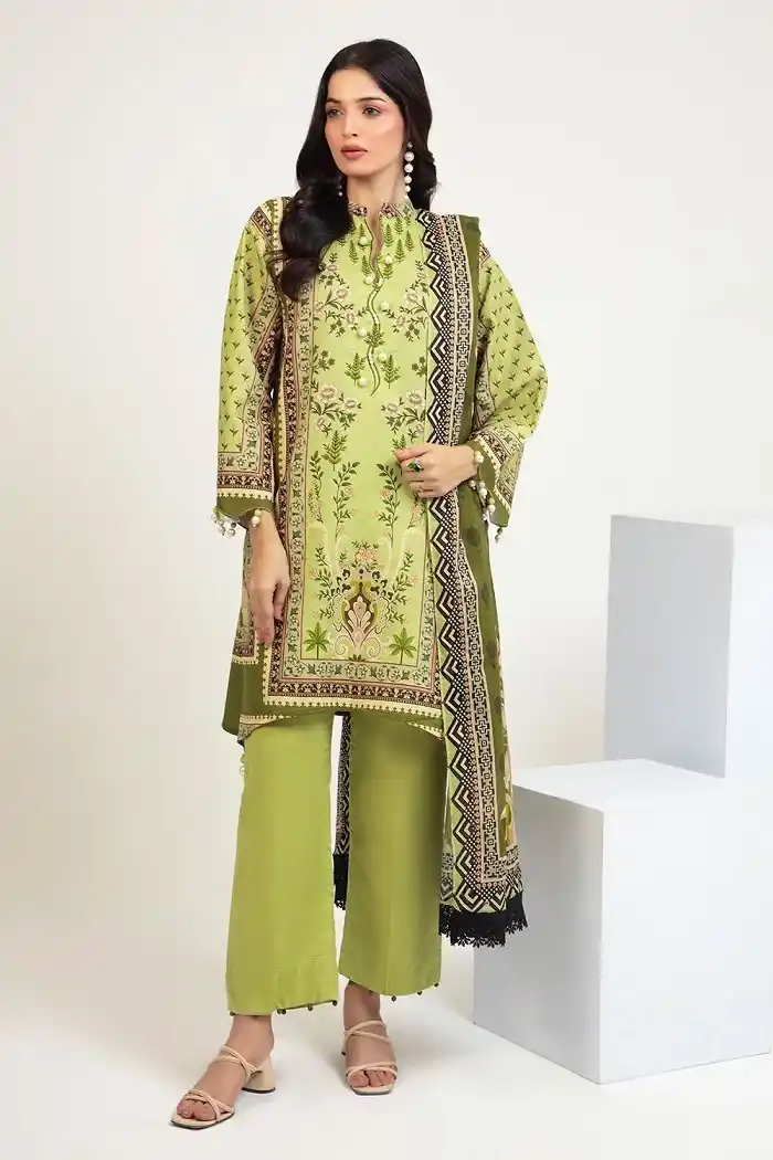 New designs printed lawn light green color 3-piece suit for Rs: 4,790Â Only.