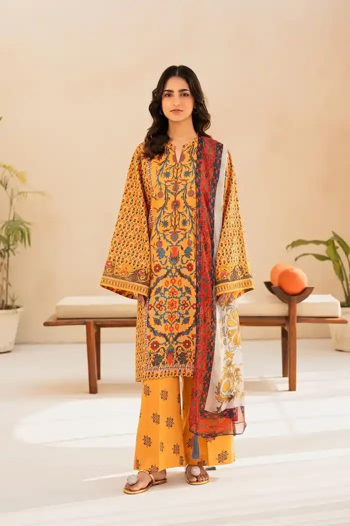 Yellow color embroidered lawn unstitched three-piece suit PKR:12,995 PKR:6,444.