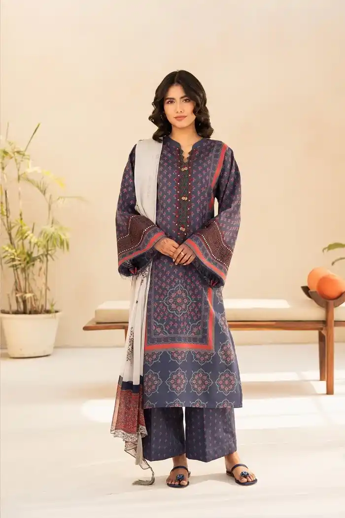 3-piece embroidered digital printed lawn unstitched suit PKR:12,999 PKR:6,499.