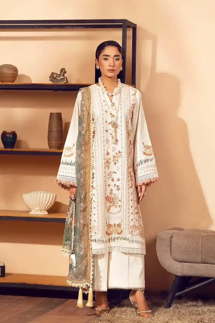 Get a graceful look this summer by wearing off-white color 3pc embroidered suit PKR:12,999 PKR:6,499.
