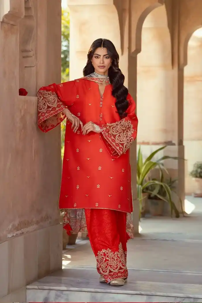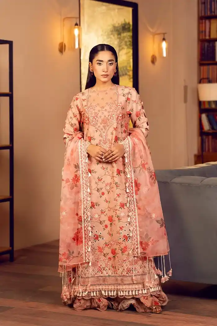 3-piece embroidered lawn peach color suit for women PKR:11,999 PKR:5,999Â only.
