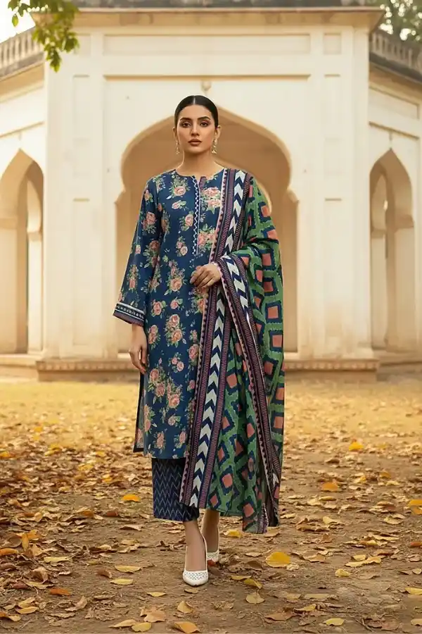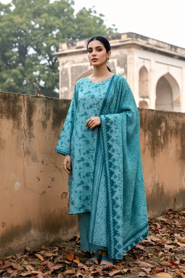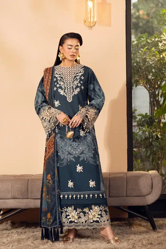 Lawn embroidered 3-piece unstitched teal color suit for women PKR:11,999 PKR:5,999.