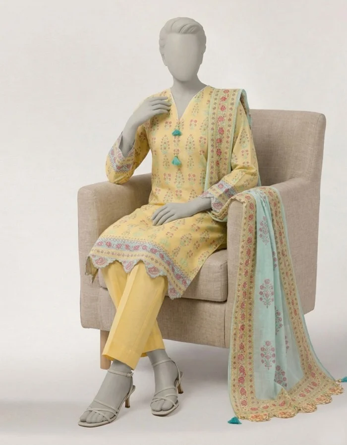 Mustard lawn embroidered unstitched 3pc suit Rs:4,590 Rs:3,222.