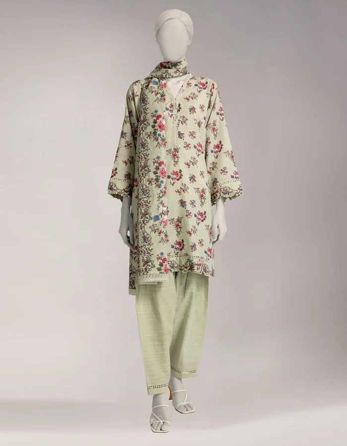 Green lawn 3pc unstitched embroidered suit Rs:6,990 Rs:3,495 only.