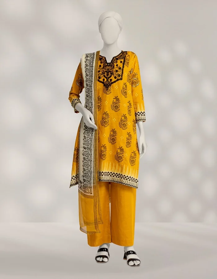 Mustard lawn embroidered unstitched 3pc suit Rs:4,590 Rs:3,672.