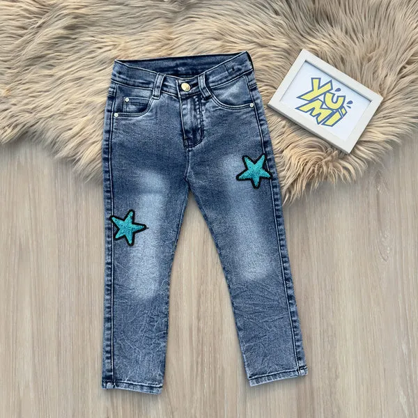 Girls summer wear denim jeans with mix color star patches Rs:1500 Rs:799.
