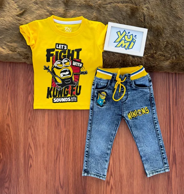 Kungfu minniors T-shirt & embroidered jeans Rs:2250 Rs:1499.