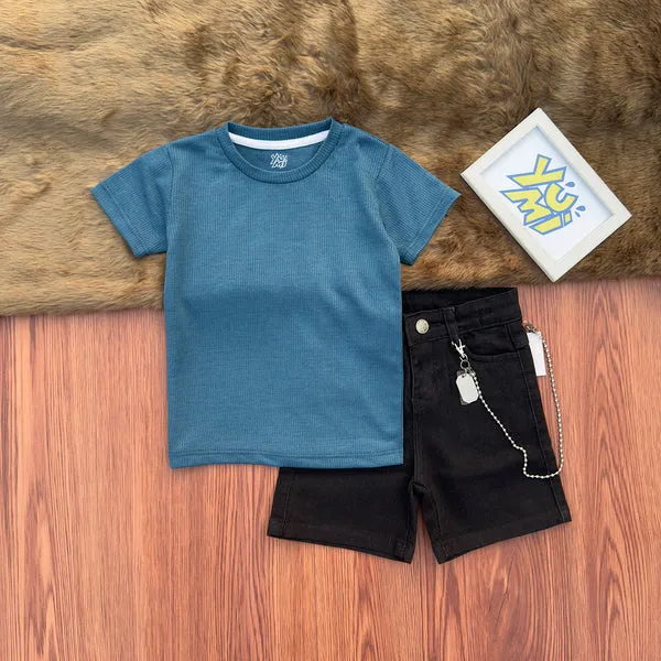 Kids black shorts & textured t-shirt set available for Rs:1750 Rs:1349.