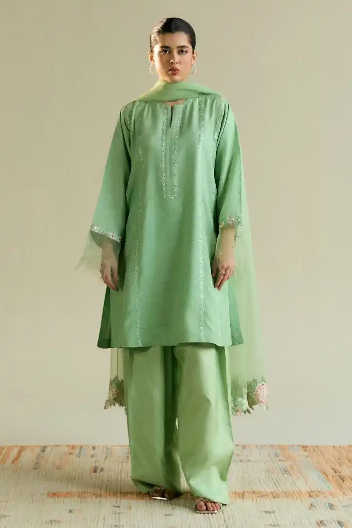 Stylish light pistachio outfit offers a fresh and refined look for just Rs:25,998.