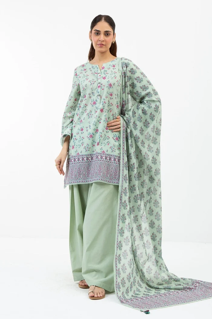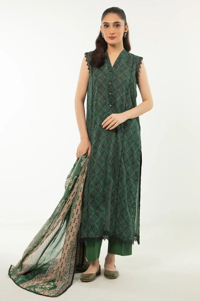Three Piece Unstitched Green color Lawn Suit Rs: 3,990Â only.