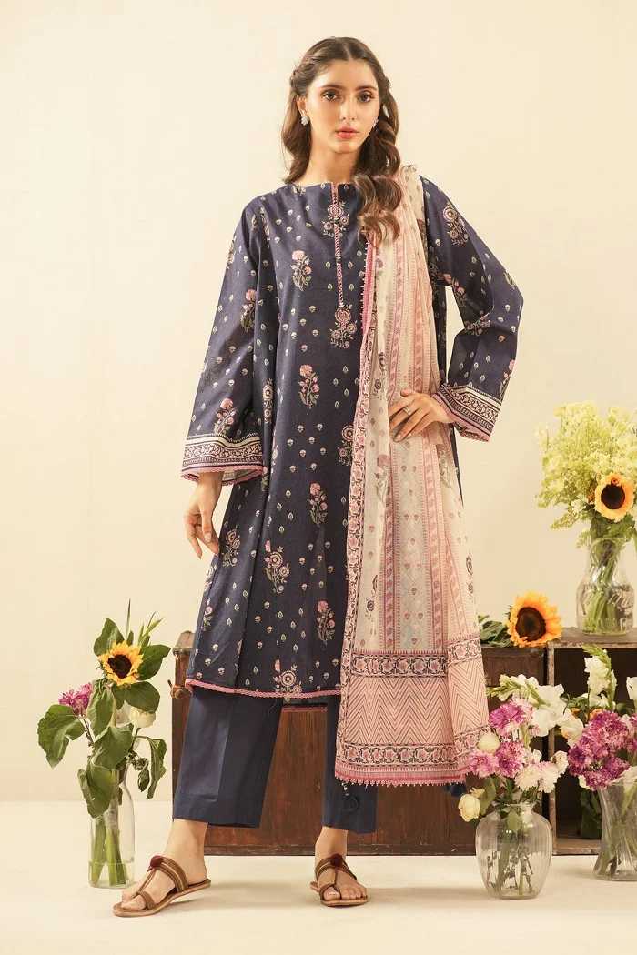 Navy printed lawn unstitched 3-piece suit for women PKR:5,290.