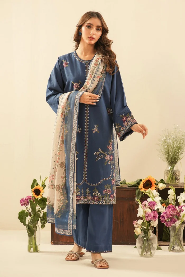 Blue color cambric Un-stitch 3Pc Suit Rs: 5,990Â only.