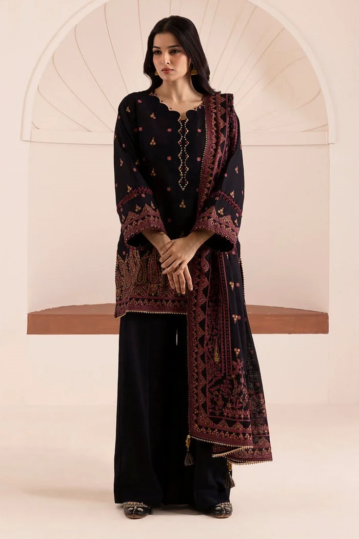 Khaddar black color 3pc suit Rs;2,690.