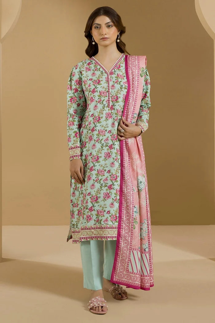 Let’s bring joy to everyday life with these floral printed sea green color 3pc Rs;2,490 only.