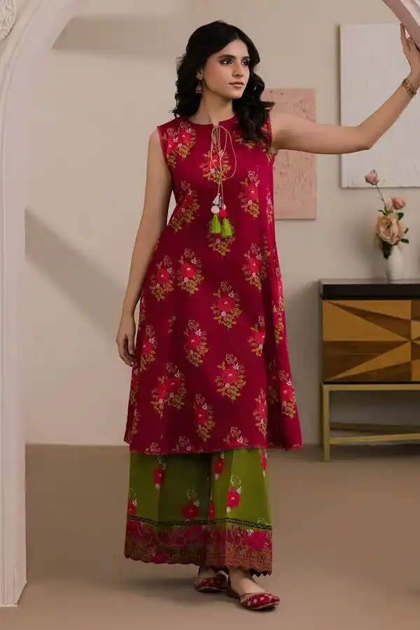 Elevate your summer wardrobe with this red lawn digital printed red color suit Rs:3,390 only.