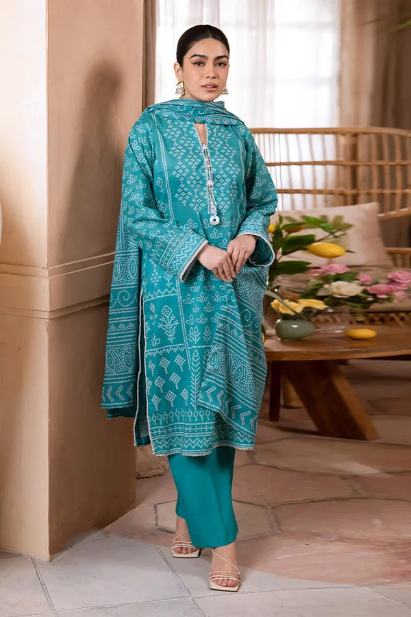 Buy 3pc unstitched teal lawn 3pc suit PKR:2,690.